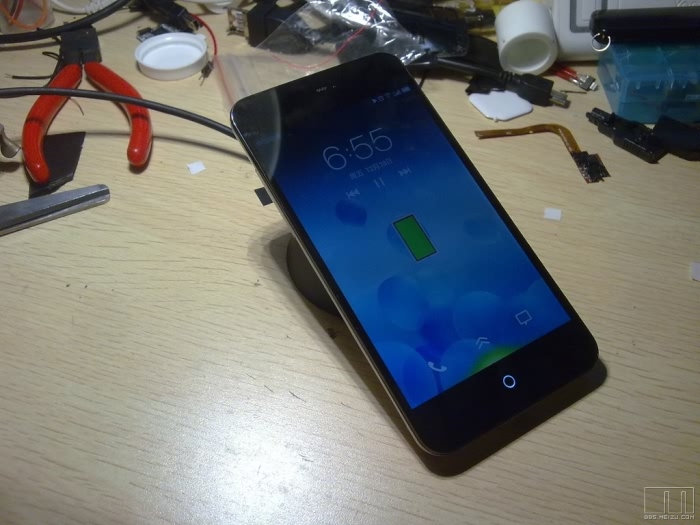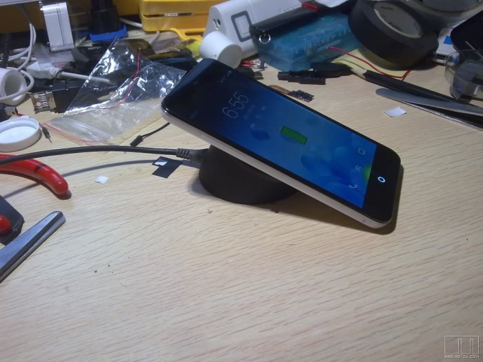 改裝完成的手機,充電時必須放到石頭上並嚴格對位,拿起來就停止充電,也就是說充電距離為0,只是省去了插拔充電線的過程。