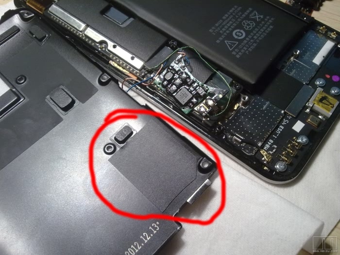 3、此處屏蔽蓋下方是主要是基帶芯片,,發熱量遠小於CPU等部件。