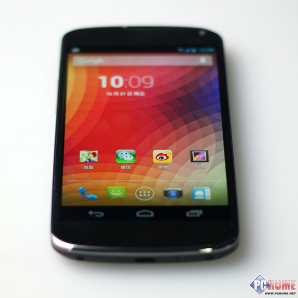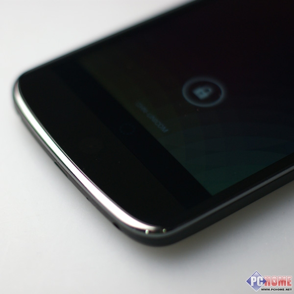 屏幕下面沒有按鍵,整個“下巴”也就短了許多,對於龐大機身的Nexus 4來說,就變得好握了一些。鏡面的設計顯得很優雅,隱藏了一個小小的指示燈,會在有信息或來電時候亮起。