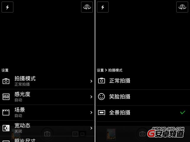 設置方法如下---進入照相模式下,通過魅族MX右下腳呼吸燈呼出功能鍵------進入拍攝模式----選擇全景拍攝