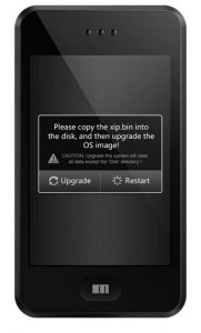 九、選擇“Upgrade”開始升級,您被提示將固件置入指定位置,且升級可能會丟失信息;如果放棄升級,請選擇“Restart”。