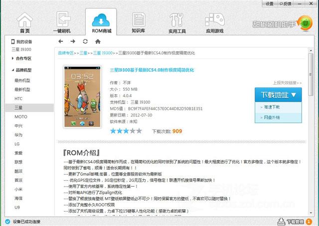 從ROM商城選擇你想要刷機的ROM包下載,看看4.1rom包已經出來,不過小編我還是喜歡精簡的4.0.4版本的,雖然買回來的也是4.0.4但是系統東西太多,不用的軟件太多,這個4.0ROM 還有很多熱心的機油給與一定的評價,所以相信他們是沒錯的!!