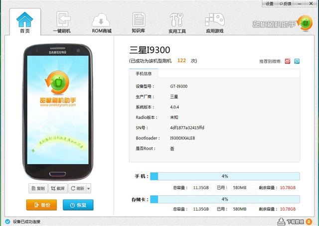 i9300 出來後,各路安卓手機玩家geek紛紛著手測試、破解,有的高手連i9300的4.1ROM已做出來。小編大概了解下,這些破解、刷機都是比較專業的,對於一般的小白用戶來說還是雲裡霧裡,不可能把自己的愛機拿來玩弄。小編最近得到消息,有款非常智能的一鍵刷機工具-“甜椒刷機助手”,是唯一一家可以對三星i9300進行一鍵刷機、一鍵解root的刷機工具。對於小白的我來說,是個非常好的消息。於是小編我也就嘗試了下下,結果還真是不錯,剛買的 i9300被我破了,還裝了個官方精簡版的rom,真的非常棒,這裡感謝甜椒刷機助手,一款非常好的一鍵刷機工具。小編也不能獨樂樂,現把刷機過程發布於大家,讓我們一起為安卓天下而歡呼吧!!