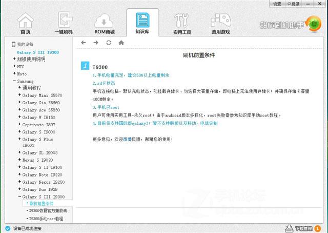 介紹到這,刷機也就完美的成功了,小編發現甜椒的知識庫裡還真是不少的東西,各個型號的刷機問題解答,各個刷機名詞介紹,手動root,卡刷,應有盡有。我想,不會刷機的人都能從這個軟件上面學到非常專業的刷機知識,成為刷機高手,最後,感謝甜椒!!