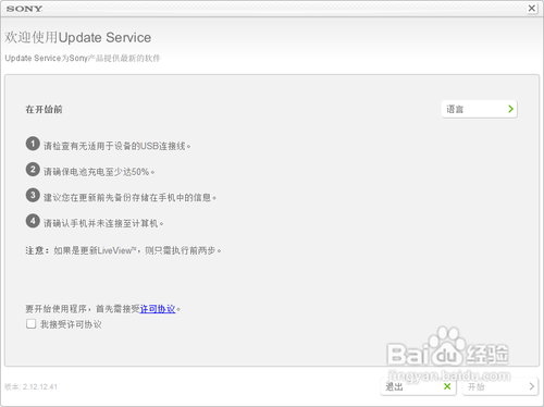啟動軟件後等待它檢測網絡連接後彈出頁面,提示你需要注意的事項,然後選擇接受協議——開始。