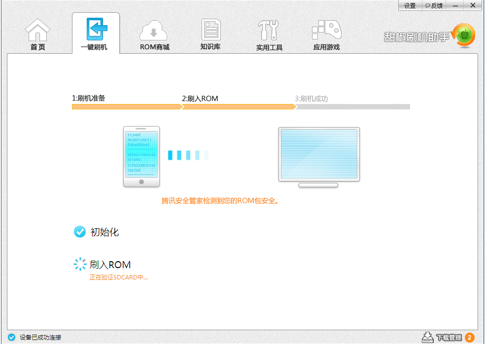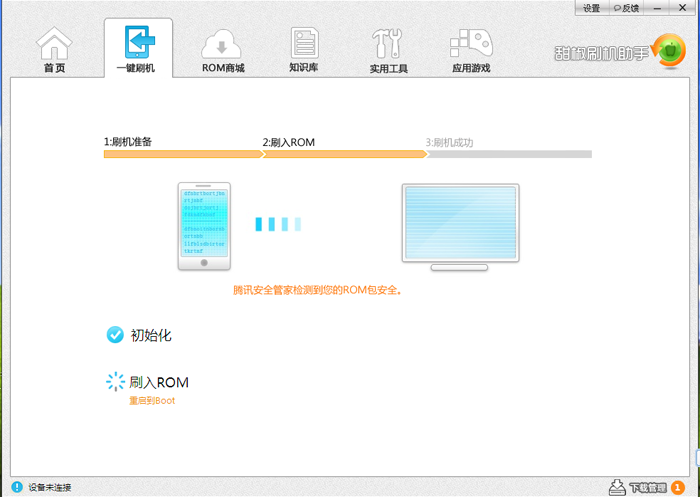 5.首先會下載ROM,下載ROM後進入刷機流程。(下載過的ROM不需要重新下載,還支持離線刷機。)