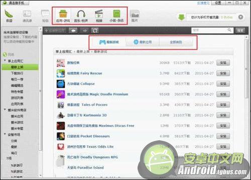 豌豆莢提供了非常豐富的軟件、游戲、小說和鈴聲資源,用戶可以在這裡找到自己需要的東西。下載和安裝的方式也非常簡單,首先將手機與電腦連接,然後輸入想要搜索的關鍵字,軟件會顯示相應的搜索結果,點擊安裝按鈕後軟件會自動下載並安裝到手機中。