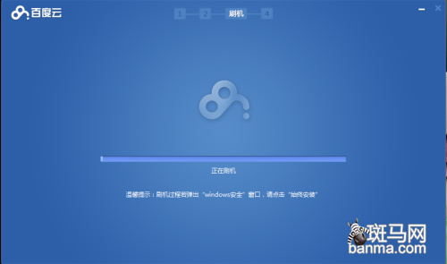 完成Rom包的下載,則直接進入正是刷機步驟,在整個刷機過程中,沒有多余的操作了選項,只需要額外的“應對”Windows彈出的安全窗口。