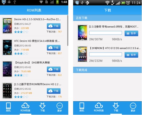 另外,甜椒刷機助手安卓版,還自帶ROM商城。不過不同的是,手機端的甜椒刷機助手可以對ROM內容做到精准匹配。用戶打開“ROM列表”,適合當前手機的精品rom一覽無余,避免了查找的麻煩。直接點擊“下載”按鈕即可下載到手機SD卡中: