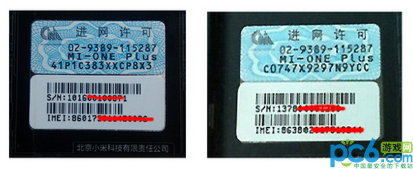 官翻版小米手機,電池倉位置的背貼SN號前四位為1378,而標准版的小米手機SN號前四位為1016。