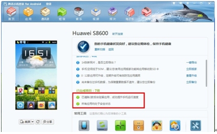 選擇“一鍵優化”後,騰訊手機管家PC版將快速、准確、高效的完成手機優化處理,讓您的手機保持良好的健康狀態,時刻擁有最強動力。