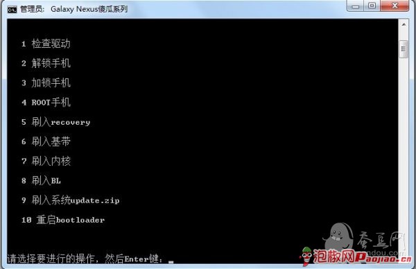 2.打開Galaxy Nexus fastboot文件夾,找到Galaxy Nexus fastboot v2.0.bat並運行,運行後界面如下: