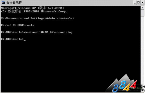 輸入第三條命令後,停頓大約30秒(視您所創造的存儲卡的大小而定)就產生了一個虛擬的存儲卡。光有存儲卡還不能讓模擬器跑起來,我們還必須把它和模擬器相連。我們只要在這黑屏幕上輸入emulator-sdcardD:sdcard.img就完成了存儲卡模擬器的連接。