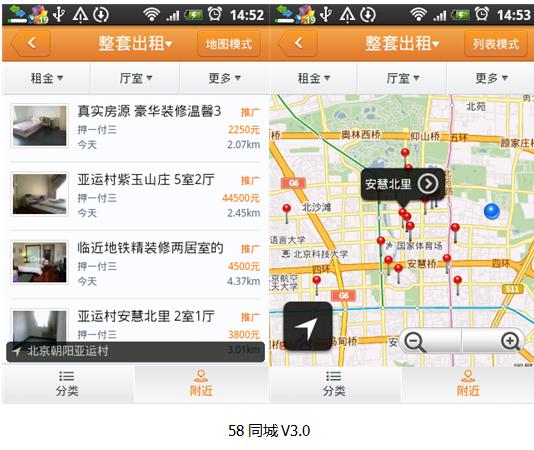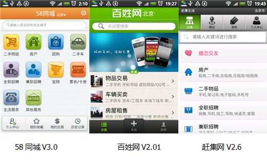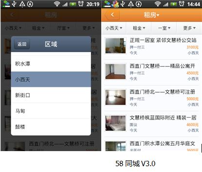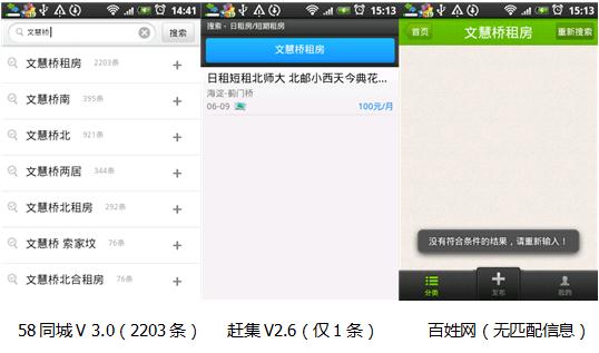 目前正值畢業季,許多走出校門的大學生迫切的需要租房,找工作等各類生活服務類的信息。而時下炙手可熱的生活信息服務類網站,非58同城和趕集網、百姓網莫屬了。從去年開始,這三家公司集中發力於無線領域,紛紛推出客戶端產品以滿足用戶在移動端的需求。那麼,這三款應用又各自有什麼優勢呢,今天,筆者就代替各位同學,以租房為例,通過搜索“北京海澱區文慧橋附近一室一廳”的房子,分別對58同城、趕集網、百姓網這三款 Android平台的應用做一個全面的評測,體驗一下這三款應用,希望給廣大用戶參考。