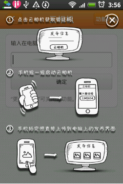 在體驗開始的時候,筆者首先發現了58同城無線客戶端V3.0中的一大創新功能亮點——雲相機。在58同城的更多設置中,有 “雲相機”功能,它可以使用戶在操作電腦發布信息時,可以直接通過手機拍照並上傳圖片。試了一下,上傳速度快操作也非常簡單,只要“搖一搖”手機,就能進入拍照頁面,拍完照片直接上傳到發布的信息中,這個功能非常便利,筆者不得不為58的貼心及創新贊一個!