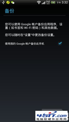 按照提示我們一步一步的繼續,終於到了備份這一選項中,這時手機會提示大家是否使用Google賬戶備份,既然那麼辛苦的設置了,當然要勾選一下了,選擇完畢後,我們就可以點擊下一步了。