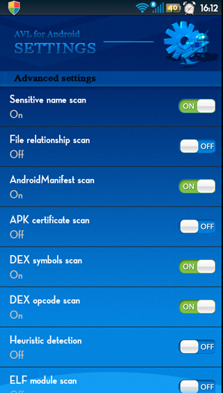 AVL SDK Mobile針對掃描智能手機中不同級別的惡意代碼,提供多種不同配置的檢測開關,以提升掃描速度和檢測能力。