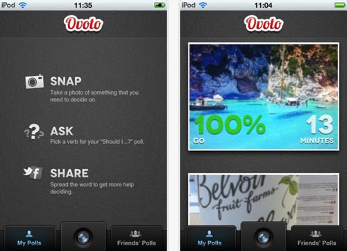 這是一款社交決策應用,用戶用Ovoto創建一個投票並分享到Facebook和Twitter等社交網絡上,通過好友投票情況幫自己做決定。