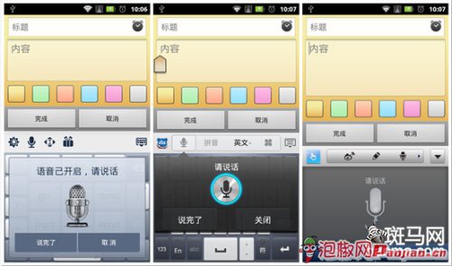 首先,從技術手段上來講,訊飛語音輸入法和百度手機輸入法都擁有自己的研發團隊,語音功能全部是自主技術,訊飛在語音輸入方面有多年的經驗,技術也比較成熟;百度則是新近的3.0版剛加入的語音輸入功能,效果如何有待考證。而搜狗及觸寶都是借用了谷歌的語音識別技術,在使用語音輸入之前要先准備 Google的語音識別應用。
