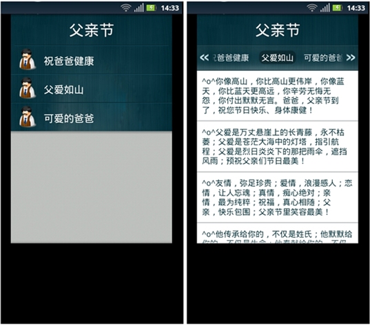 “短信寶盒之父親節”這個應用收集了各種各樣的父親節問候短信,相信父親看到這些短信後會跟爺爺聊聊天。