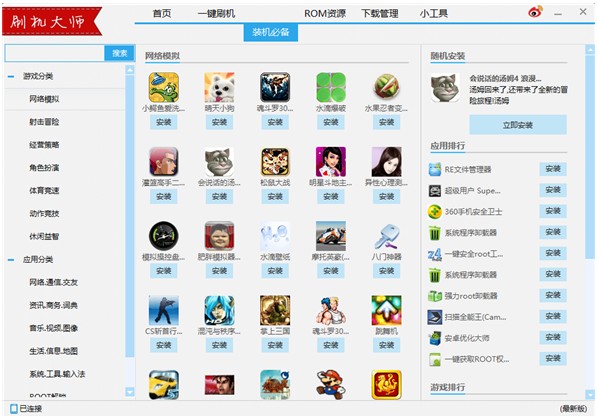 4、在V2.0 Beta版本中,裝機必備的軟件羅列有序,一目了然,一個完整的應用商店,應然而生,以後直接裝軟件和游戲,就快活方便了,這次的目的是刷機,這個略過。