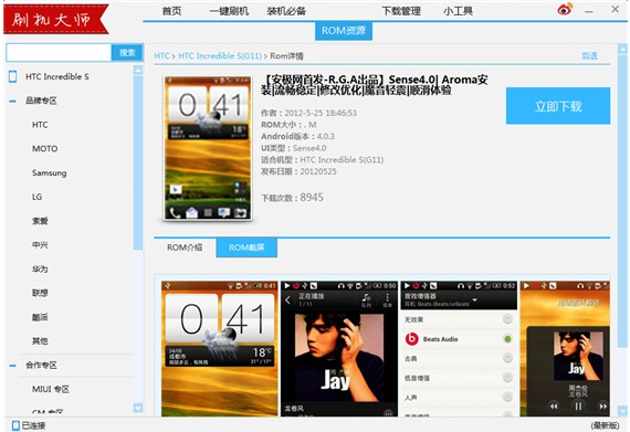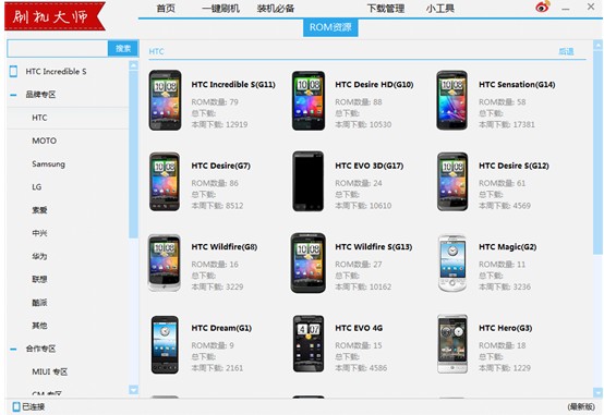 首先看一下V2.0 Beta版本與上一版的主要區別。小編的感覺是,比較之前版本,V2.0 Beta版最大的亮點就是能夠根據手機自動適配最新、最熱的ROM,一目了然,完全省去繁瑣的手動查找下載過程。 另外如果你是HTC手機用戶,那麼恭喜你! 因為這個版本HTC機型無需ROOT即可直接刷機,這絕對是個讓人熱血沸騰的功能。最後一點,也是最重要的一點,就是這個版本在操作界面、用戶體驗上也做了很大的優化,還支持截屏功能,帶給大家絕對不一樣的操作體驗,和市面上的其它同類刷機工具相比,簡直是屌爆了。