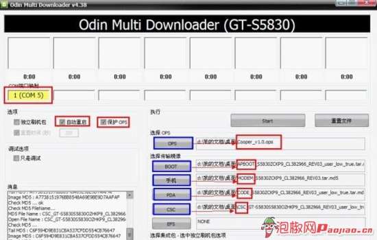 以上的放包的例子都是按照最新國行的2.3.4為例的,不同版本的對應都是一樣的,變化的只有版本號,例如要是我刷的歐版的XEKPH版本,上 邊的ZCKP9就會變成XEKPH。放好了包如下圖(放了包我們你不要急於立即點開始刷機,給他一點時間去識別驅動)【注意:如果是整合刷機包請勾選“獨 立刷機包”】記得多看幾遍,不然放錯了包很難弄得,確定無誤後點擊開始(start),開始刷機了: