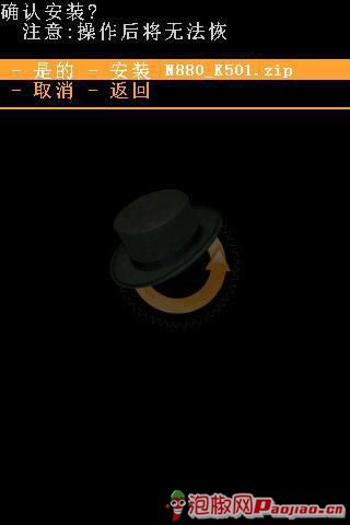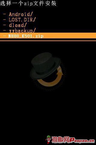 (4)選擇“從SD卡選擇zip文件”確認進入下圖,並選擇要升級的ROM進行確認。
