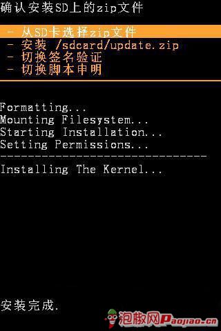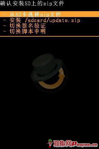 (3)通過音量上下鍵選擇“從SD卡選擇刷機包”並使用電源或搜索鍵確認,如下: