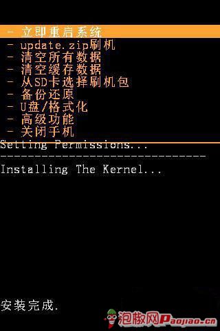 (6)刷機完成後系統會返回二級菜單界面並提示“installation completed!”“安裝完成”,如下圖: