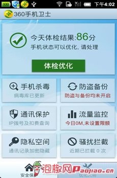 360成名於PC端360安全衛士,是一款主打系統保護、清理系統垃圾、殺毒於一體的軟件。360手機安全衛士這次更新了全新的界面UI,更清爽的界面,讓我們可以有更好的視覺體驗。集合了手機殺毒、防盜必備、節點管理、流量監控、一鍵加速、騷擾攔截以及一鍵手機體驗功能,這個模式與PC的非常相近。它可以讓我們在最快速的情況下完成手機安全檢查操作。