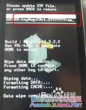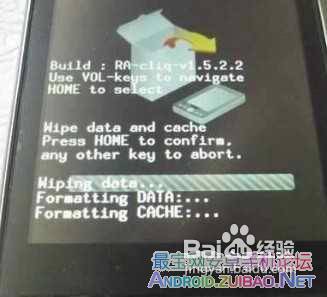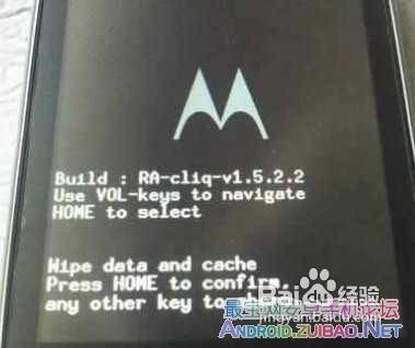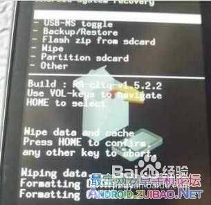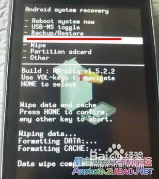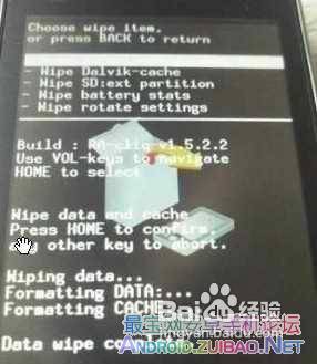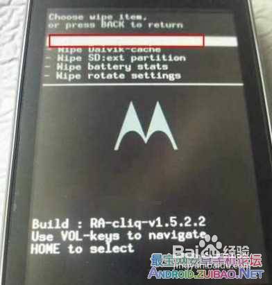 4.使用音量減小鍵將光標移到wipe然後按房子建進去
