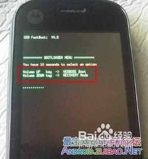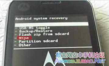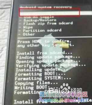 3.然後按音量減小鍵進入recovery模式出現以下界面