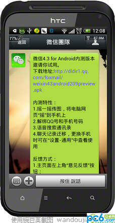 微信好用嗎?不能一句話概括,用過iphone的朋友都知道,微信4.3版本早前已在ios平台發布,新增了搖一搖傳圖功能,安卓版本現在還是內測版本,估計4.3的正式版本還需要