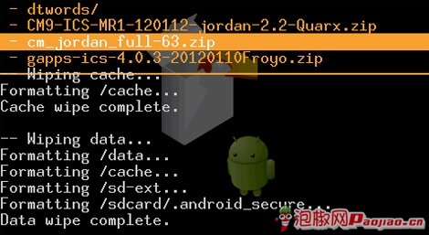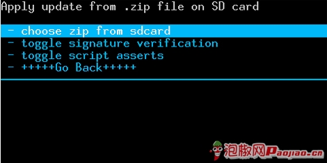 7)然後在彈出的目錄中選擇choose zip from sdcard,找到自己之前下載好放入內存卡的刷機包電源鍵確認刷入即可。不會刷的同學可以看圖操作。