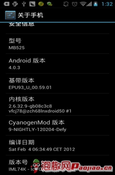 其實這就是傳說中的4.0.只不過是CM基於官方源代碼修改而成的。根據觀察來看Defy 4.0已經不可能出現官方版本了,所以想體驗的同學還是坐等CM吧。目前這個版本相機已經可以,只是無法預覽,基本功能已經完善,希望各位耐心期待完整版吧。