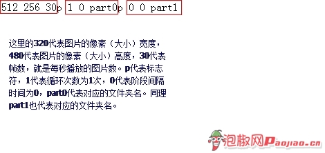 p 1 0 part0 ——這裡的p代表標志符,1代表循環次數為1次,0代表階段間隔時間為0,part0代表對應的文件夾名;