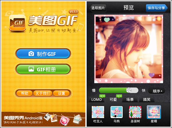 新年到,相信大家已經在腦海中計劃如何“玩樂”新春,聯絡可以一起2的朋友,玩吃喝、玩唱K、玩shopping……,玩樂之中哪一個能離不開拍照分享?節前搶上線的美圖GIF新版1.1.1,新增多種特效場景,給你的新年玩樂標貼流行范兒,普通范、文藝范、2X范……你一定不可錯過。