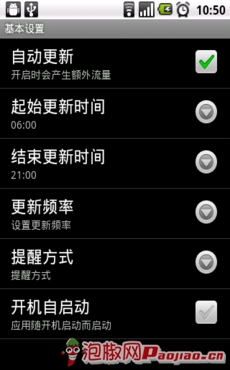軟件默認是自動更新的。 用戶可以在基本設置那裡設置更新時間,更新頻率。或者取消自動更新,當需要浏覽資訊的時候才進行手動更新。這樣就能夠少消耗一些不必要的流量了。