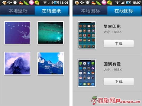再好的手機,整天面對一塵不變的桌面都會厭煩吧,QQ桌面內置完美的主題庫、壁紙庫和圖標庫,不僅有主地主題,而且還支持在線主題哦!
