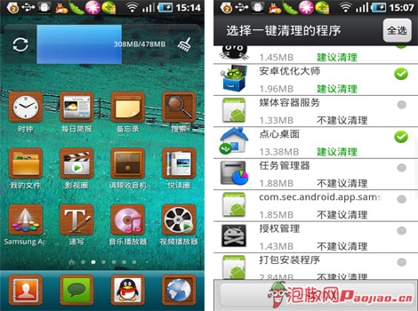 相信大多數椒友都喜歡把智能手機定位成掌上游戲機,喜歡在自己的手機上運行各種各樣的游戲和軟件。但是多任務的運行不僅給用戶在使用時帶來不便,還會導致對系統資源的隱形浪費。QQ桌面可以實現空閒程序自動掃描一鍵清理功能。