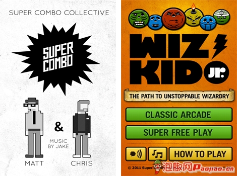 點擊進入Wiz kid jr.(維茲基德消除),跳出一個super combo collective(超級組合集體)界面,但數秒後會自動跳到模式選擇界面,椒友們可以根據自己的喜好來選擇游戲模式(Classic arcade經典街機模式和Super free play超級自由發揮模式)!