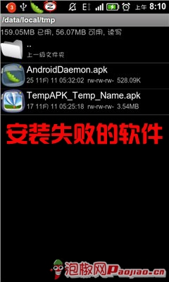 打開re管理器,依次打開路徑/data/local/,你會看到rights和tmp這兩個文件夾(有的可能沒有rights這個文件夾,不過沒關系)。打開tmp文件夾, 你可以看到以前安裝失敗,或者是安裝的途中重啟後失敗的垃圾軟件游戲都可以在這裡找到。我們只要將它們統統的刪除就可以啦。然後重啟手機,椒友們就能發現,自己手機的內存比之前的多了好多。