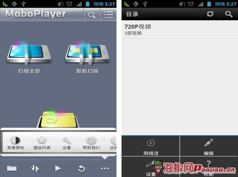 簡介:目前MoboPlayer可以運行在幾乎所有的Android設備上,憑借專為移動設備優化的播放核心以及高度優化的FFmpeg解碼器,MoboPlayer使得原本只能在PC上播放的多媒體文件現在同樣可以在手機中流暢播放。除了進一步優化播放核心外,MoboPlayer還著重增強了媒體庫功能,更加強大易用,同時大幅擴展了播放界面中的操作方式,雙擊暫停、上下滑動調節音量和亮度、左右滑動跳轉以及屏幕鎖定功能,讓你能完美享受欣賞視頻帶來的樂趣。