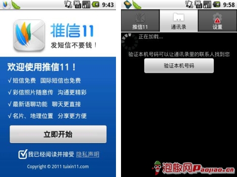 發送短信息和使用電話通話聯系是人們日常對於交流的首要選擇。開心固然必要,但是面對於高額的話費卻是很多普通消費者所不能承受的的。有沒有不花錢就能盡情享受發送短信息跟語音聊天功能的便捷手機工具呢?當然有啦。泡椒小編拉拉今天就為大家推薦一款不但能夠免費語聊而且支持無限信息免費發送,並且可以直接將自己所在地進行地圖精確定位發送的超方便安卓手機軟件——推信11最新評測。