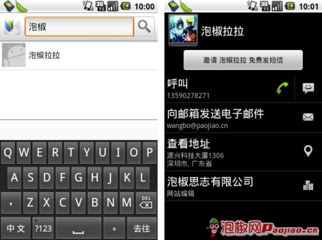 推信11的通訊錄搜索界面