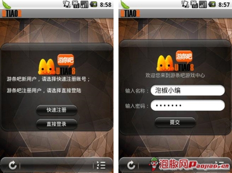 小編是通過泡椒網自主研發的“安卓驅動”對游條吧進行一鍵式下載、安裝的。親自測試無毒無插件,安全可用。點擊圖標開始運行軟件,如果是初次運行的話系統會要求用戶登錄或者是新注冊一個帳號,當然這也是出於安全考慮以及方便資料管理。便捷的一鍵式注冊讓您並不會覺得需要登錄會是一件多麼頭疼的事情。