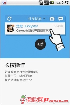 QQ空間:長按操作介紹界面(左)和長按操作選擇界面(右)
