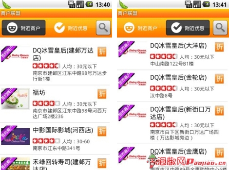 在軟件的“附近”功能裡我們可以利用手機自身攜帶的GPS定位功能來得到附近的商戶信息與優惠信息。這對於喜歡吃喝玩樂的友友們來說確實是一項不錯的選擇。在家裡動動手指,外面的一切全都知曉。聽說最近有一家冷飲店鋪在舉行優惠喲,趕快和自己的伙伴們去嘗嘗鮮爽一把,在夏天既吃雪糕又省錢,何樂而不為。