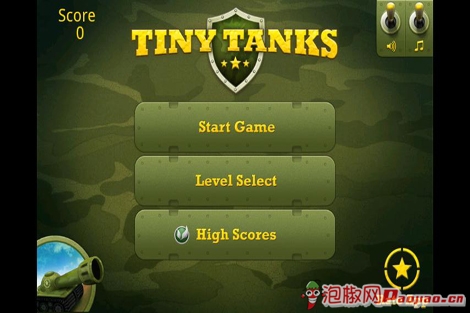 椒友們可以通過泡椒網最新發布的泡椒軟件筐和安卓驅動件直接搜索並且下載迷你坦克大戰這款游戲到您的安卓手機中。在菜單界面點擊安裝完成的圖標開始運行游戲。主界面的色調采用了迷彩服的效果,在這裡可以對游戲進行一些簡單的設置。
